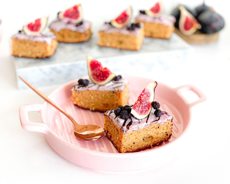 Method: Pre-heat oven to 180C. Blend all the ingredients tougher, line out your 8 x 8 inch tray and line with non stick baking paper. Pour into your tray and allow to bake for 25min. Allow to cool, cut into squares and decorate.